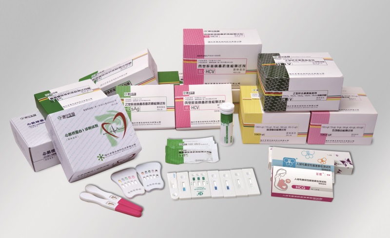 血筛系列:乙肝表面抗原、乙肝两对半检测板、丙肝抗体、艾滋病毒抗体、梅毒螺旋体抗体;肝炎系列:甲型肝炎IgM抗体、戊型肝炎IgM抗体、乙型肝炎病毒前S1抗原、乙型肝炎病毒前S2抗原;呼吸道系列:肺炎支原体IgM抗体、肺炎支原体IgG抗体、肺炎衣原体IgM抗体、肺炎衣原体IgG抗体;还有心脏标志物系列、优生系列、性激素系列、消化道系列、性病系列、风湿性疾病系列、家庭自检系列等产品供选择。